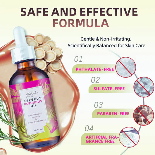 Cyperus Rotundus weakens the follicle, causing hair to grow slower and thinner each time.
